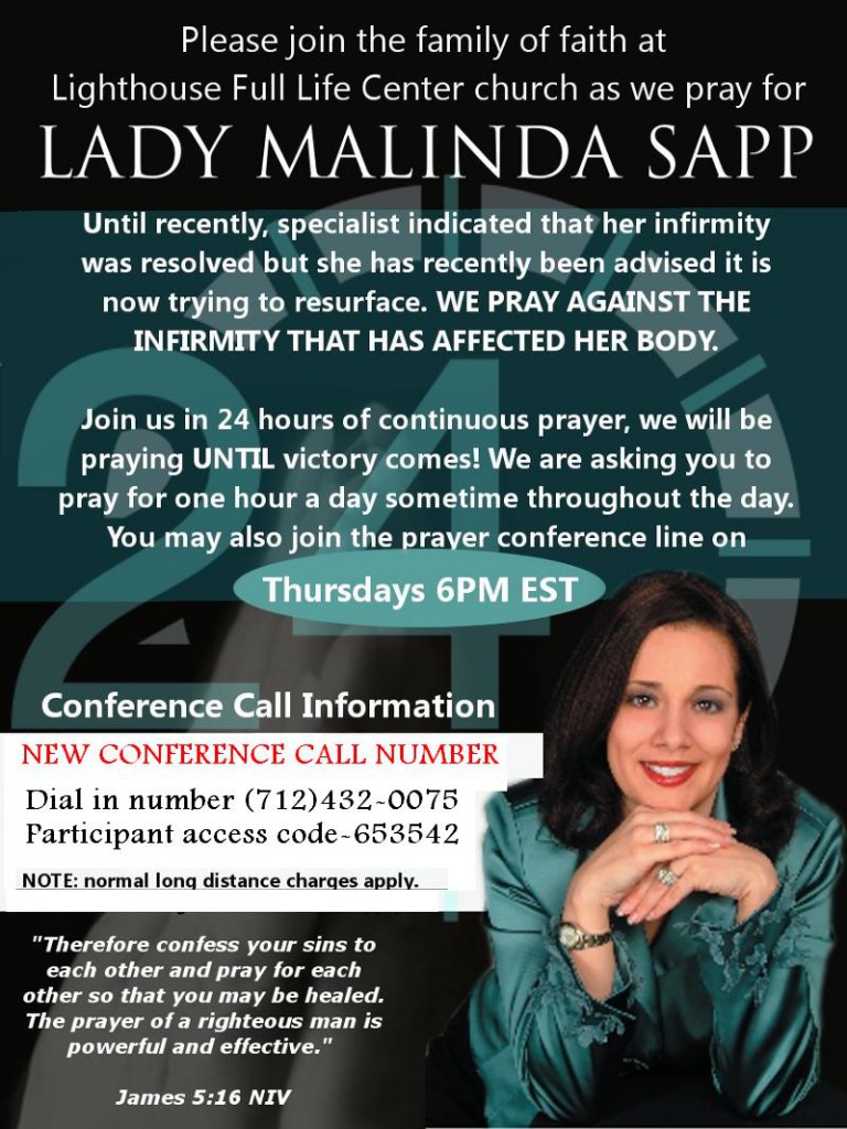 Now he needs us. Pastor Sapp’s wife, Lady Malinda Sapp (also a Minister) is battling stage 4 colon cancer. It is reported that this is not her first go round with this disease and that she was once in remission. Now to have it return again.